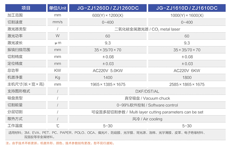 適用材(cái)料範圍: 3M/PET/PC/PAPER/OCA/防窺膜/防爆膜/背光(guāng)源/擴(kuò)散/泡棉/光學薄膜/